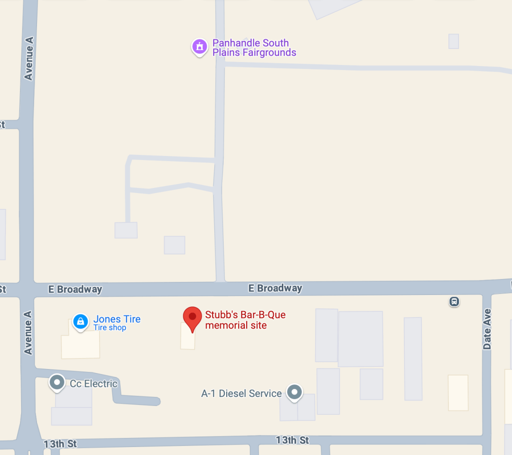 Location: Stubb’s Bar-B-Que Memorial Site, 108 E. Broadway, Lubbock, TX 79403